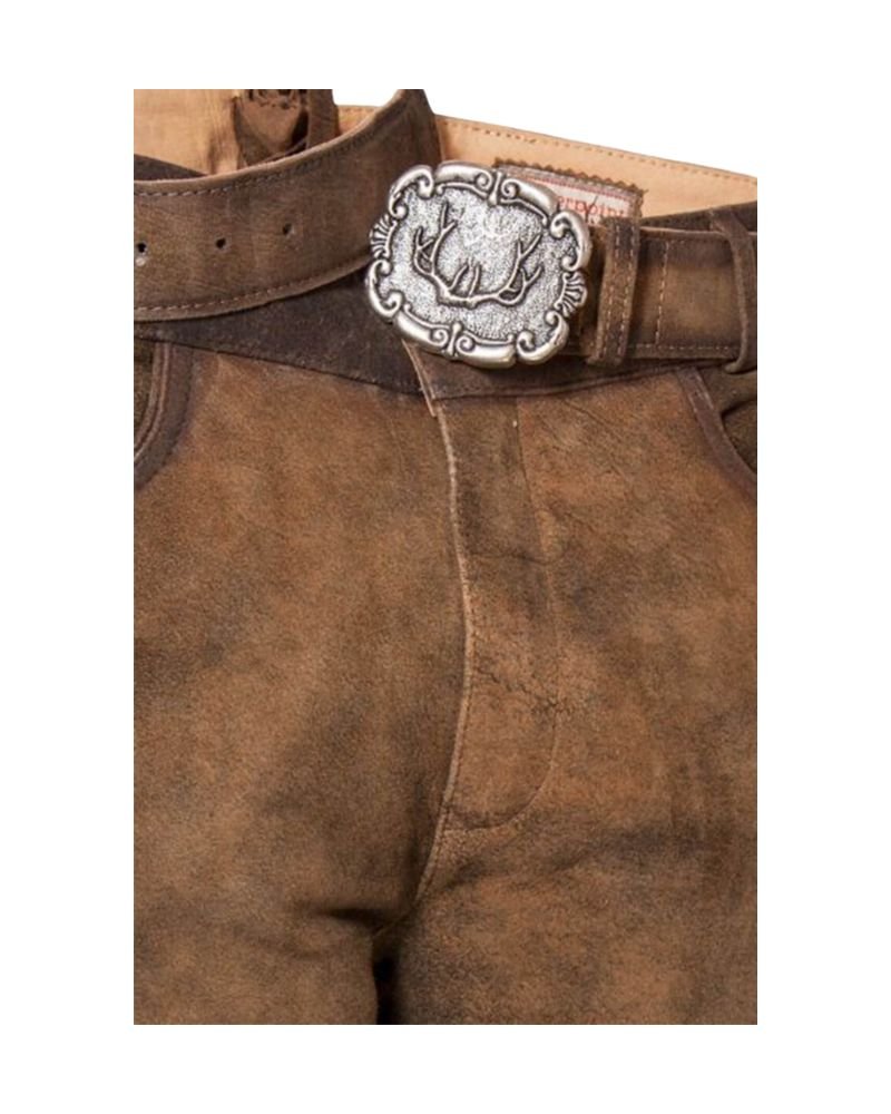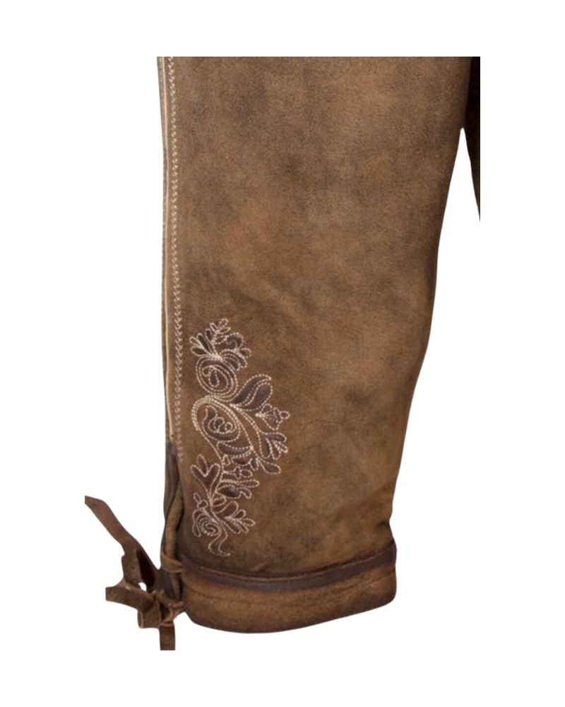 - Made from premium chestnut brown suede for a timeless, rustic Bavarian look