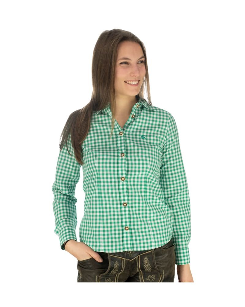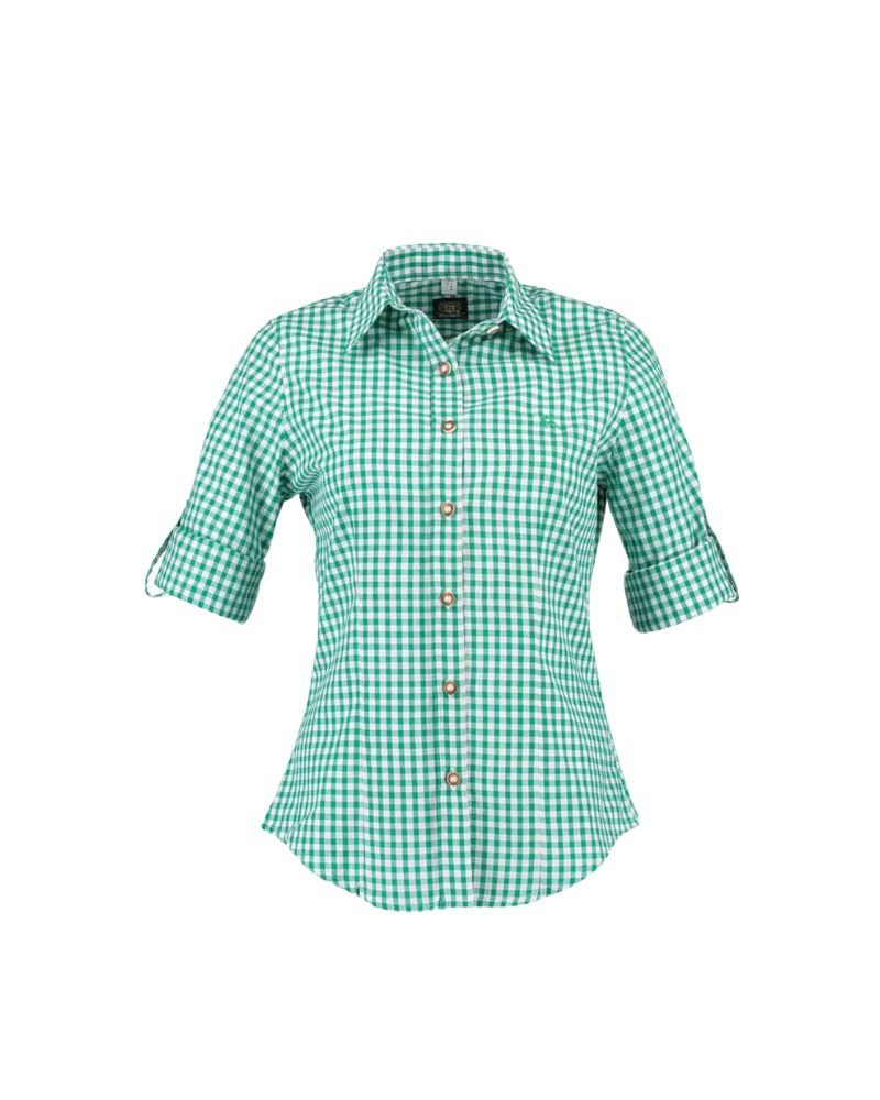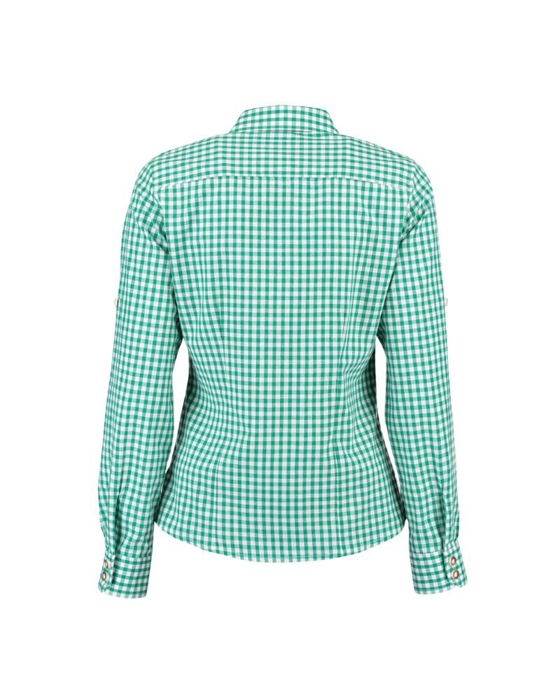 Alpine Green and White Checkered Trachten Shirt for Women