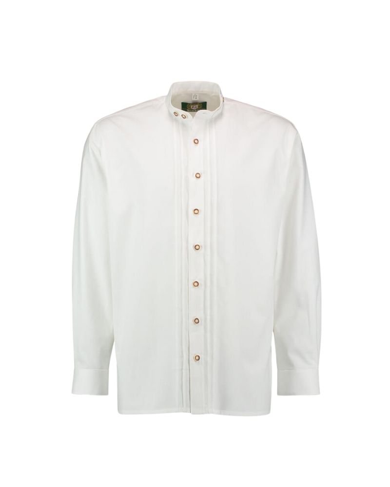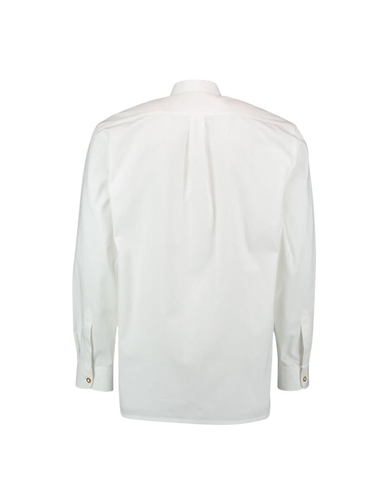 - Traditional stand-collar Trachten shirt in crisp alpine white