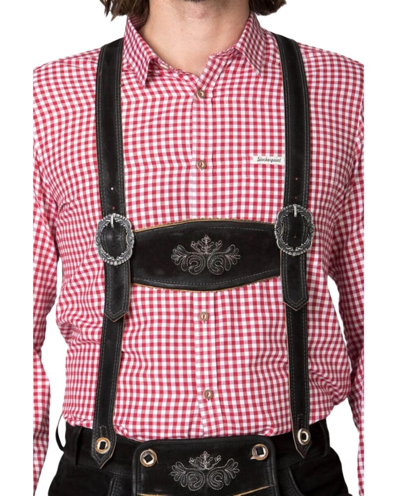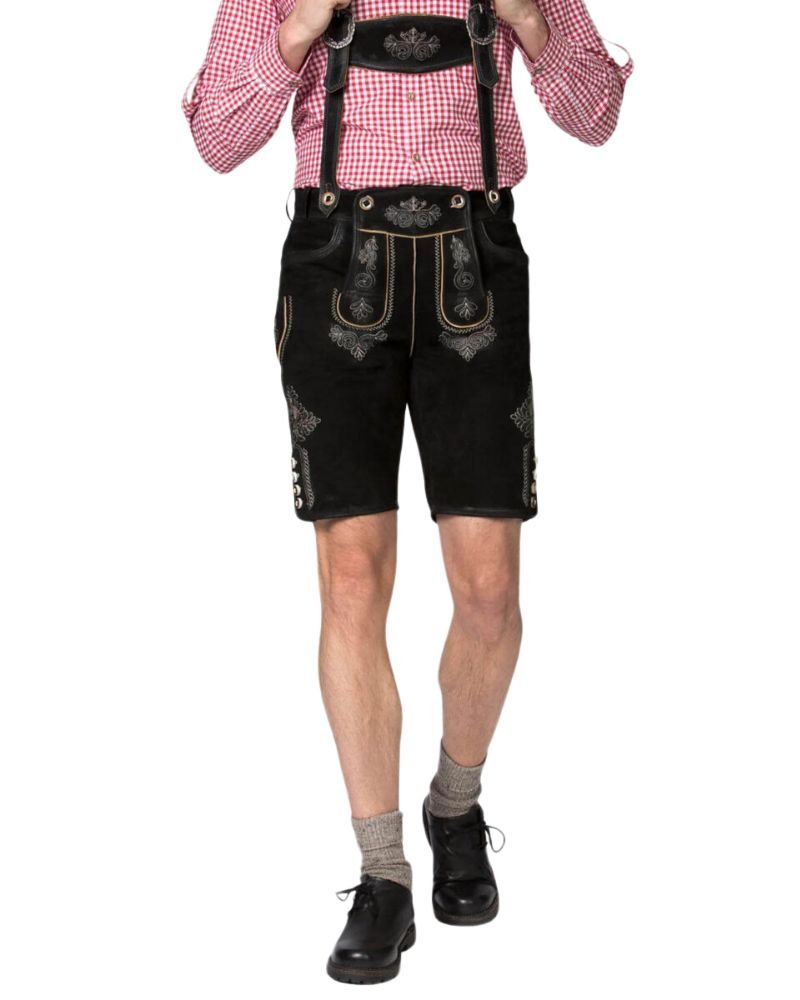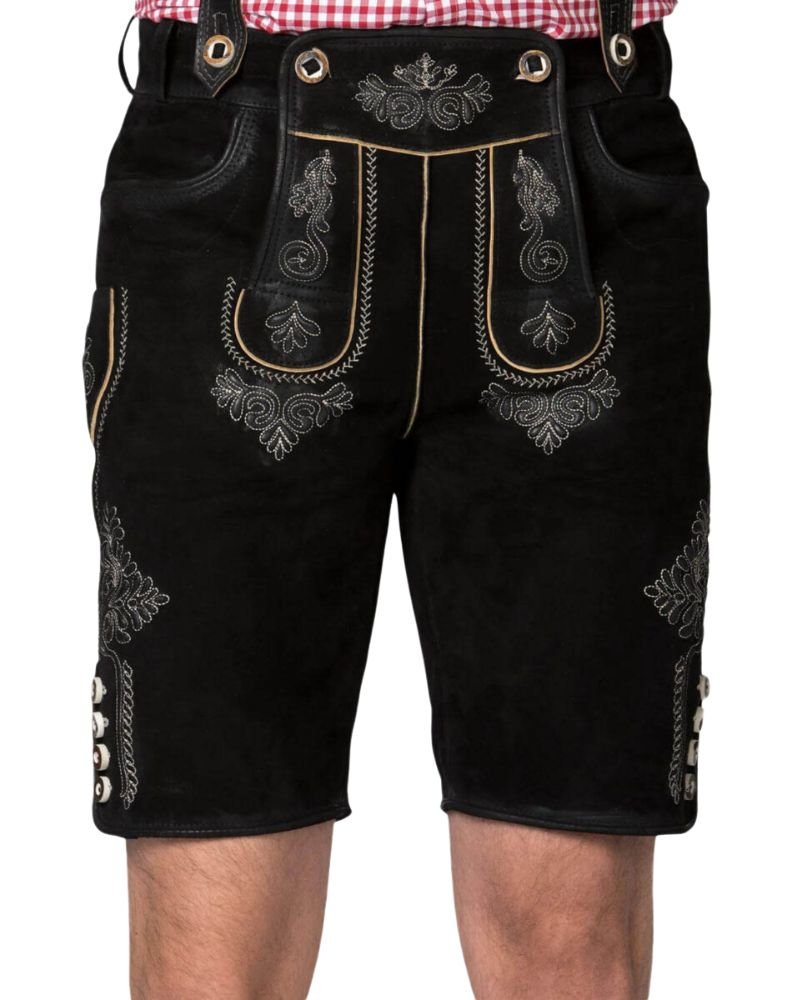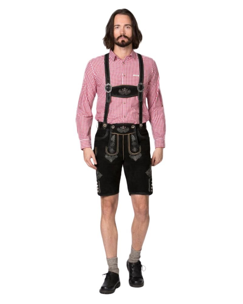 Command attention at any traditional event with the Konrad Imperial – Black Bavarian Lederhosen with Silver Embroidery from German Attire. This bold piece embodies regal tradition and modern luxury, tailored for the man who refuses to blend in. The combination of black suede leather and silver-accented embroidery creates a high-contrast look worthy of grand entrances—perfect for formal folk gatherings, Oktoberfest, or any moment that calls for elegance and heritage.