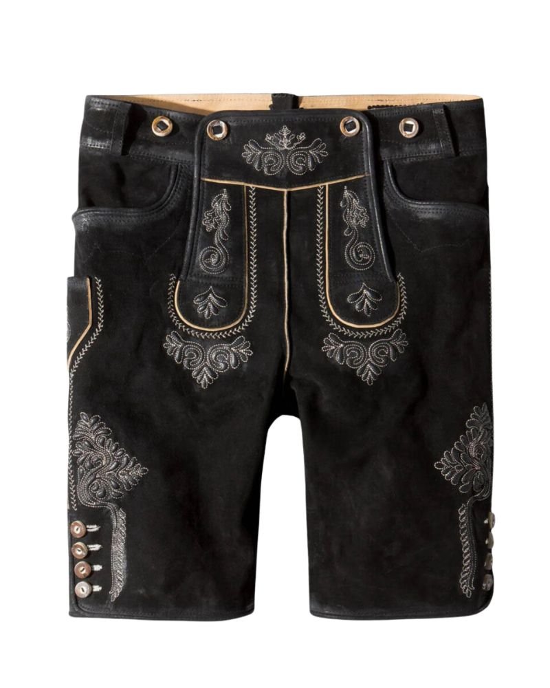 This is a showpiece Lederhosen. The black and silver combination is striking without being too flashy. The stitching and embroidery are sharp and clean, and the fit was perfect. These are ideal for formal traditional events or even weddings.