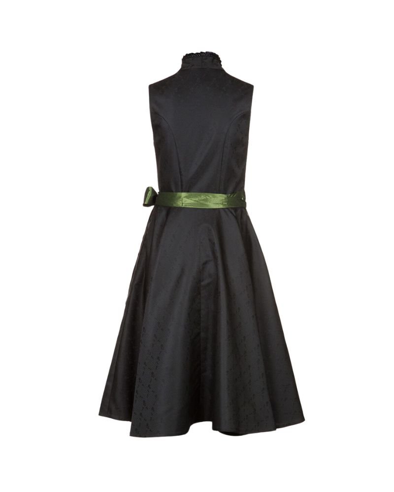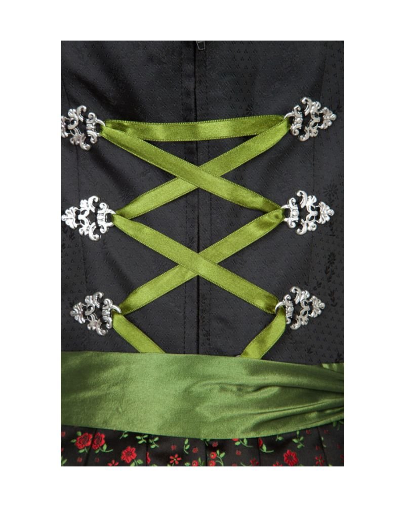 This dirndl features a ribbon-laced bodice that creates a flattering, cinched waist, drawing attention to the feminine figure. The stand-up collar, a nod to vintage dirndl styles, adds poise and elegance, making the neckline more refined. Combined, these features provide both visual impact and comfortable wear for long hours at festivals or formal gatherings.