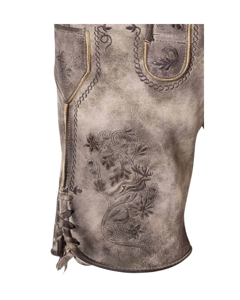 These are by far the most stylish Lederhosen I’ve owned. The gray leather gives it a cool, understated vibe and the embroidered design adds just the right amount of detail. Fit was excellent right out of the box. German Attie continues to impress with every product.
