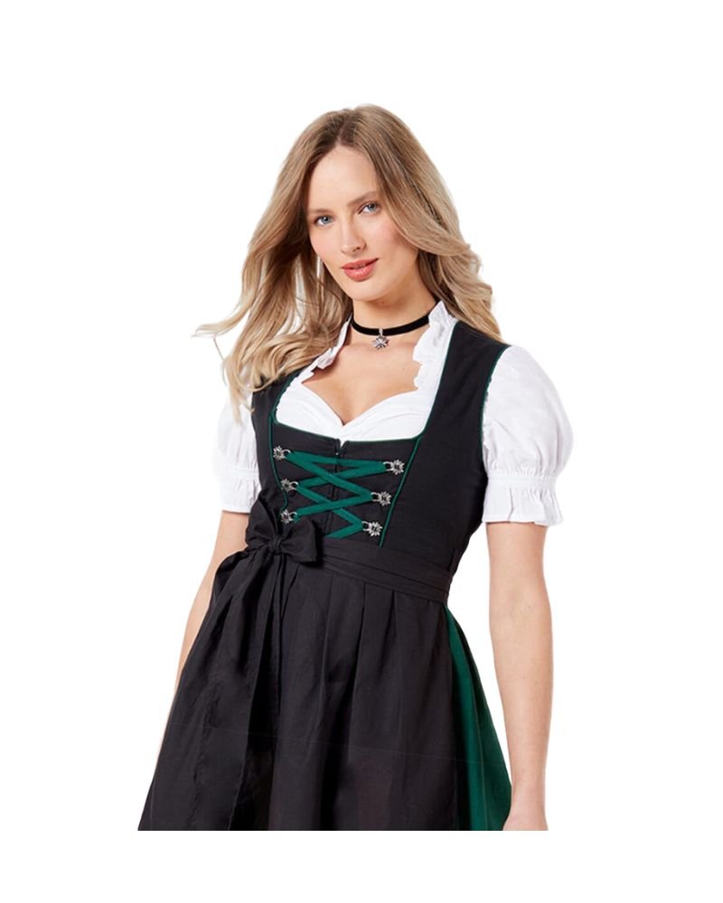 This dirndl is a perfect blend of comfort and elegance. The 100% cotton construction made it super breathable even in a packed beer tent, and the black apron tied the whole look together. I received several compliments on the color contrast — the green and black really pop. The corset lacing gives a flattering shape without feeling too tight. A great piece for authentic cultural celebrations.