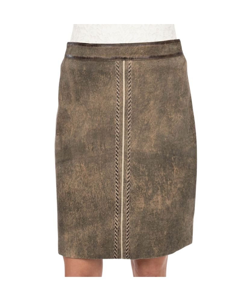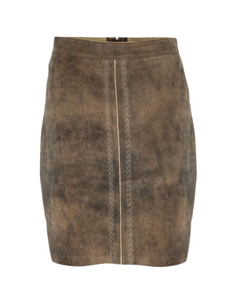 Step into a world where tradition meets refined style. The Helmine taupe brown braided-trim leather skirt is a timeless piece that tells a story of Bavarian heritage and artisanal skill. Add it to your collection today and make every occasion unforgettable.