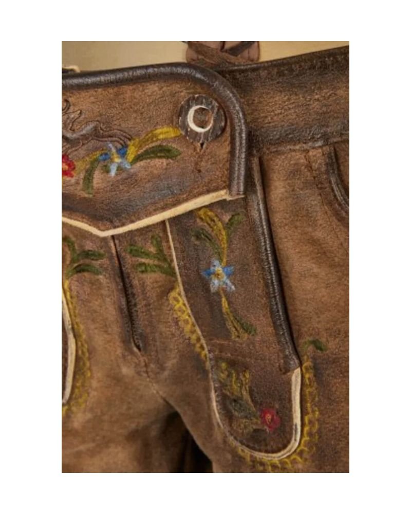With two front pockets and a dedicated knife pocket, these Lederhosen aren’t just pretty—they’re practical. Whether you’re strolling through a festival or dancing at a themed event, you’ll have room for essentials without sacrificing style. The traditional stag horn-style buttons lend a rustic, tactile finish.