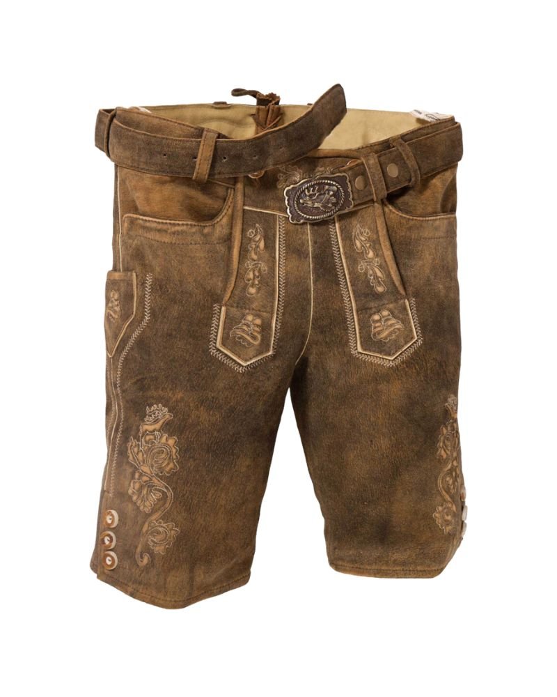 Designed with two front pockets, a knife pocket, and detailed buttons, this lederhosen pairs practicality with premium style. Its rich umber tone complements a wide range of traditional shirts, especially when paired with options from our Lederhosen collection for men. For a cohesive look, match it with Mittenwald Hirsch-Etched Lederhosen accessories or a classic Bavarian shirt.