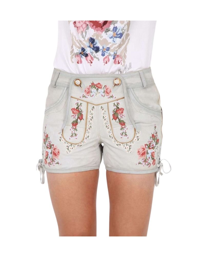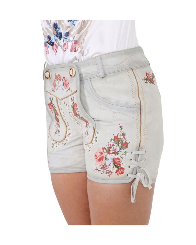 What sets this women’s Lederhosen apart is its graceful embossed embroidery, showcasing authentic Bavarian patterns with a refined edge. The floral motifs are inspired by alpine nature—particularly the iconic Edelweiss bloom—delivering both artistry and tradition in one timeless piece.
