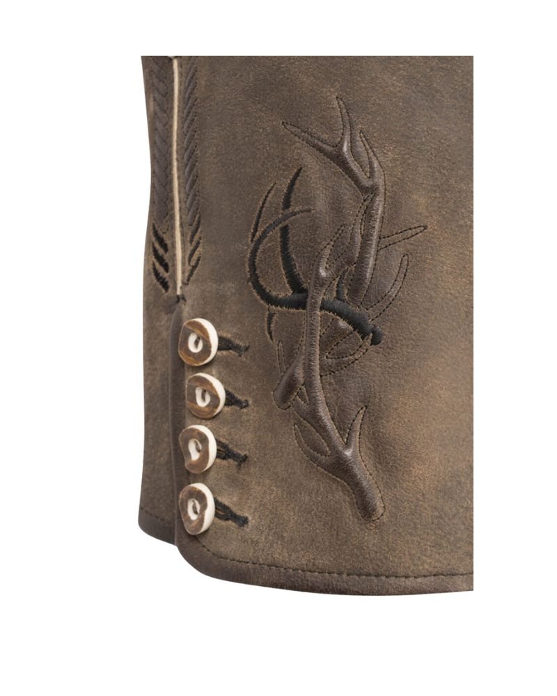 These are hands down the best Lederhosen I’ve owned. The forest stag motif gives it a rustic elegance, and the deep oak brown shade is very earthy. Wore them at a local gathering and got lots of positive comments. Very satisfied with the purchase!