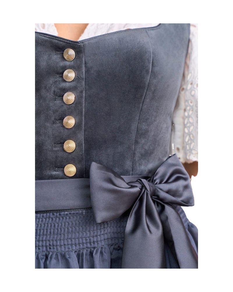 I love how sophisticated this dress looks. The velvet adds real texture, and the stormy blue is both dramatic and classy. The satin ribbon on the apron gives a luxurious finish, and it held its shape the entire night. This dirndl is ideal for fall events — cozy without being bulky. Highly recommend it if you want something elegant yet festive.