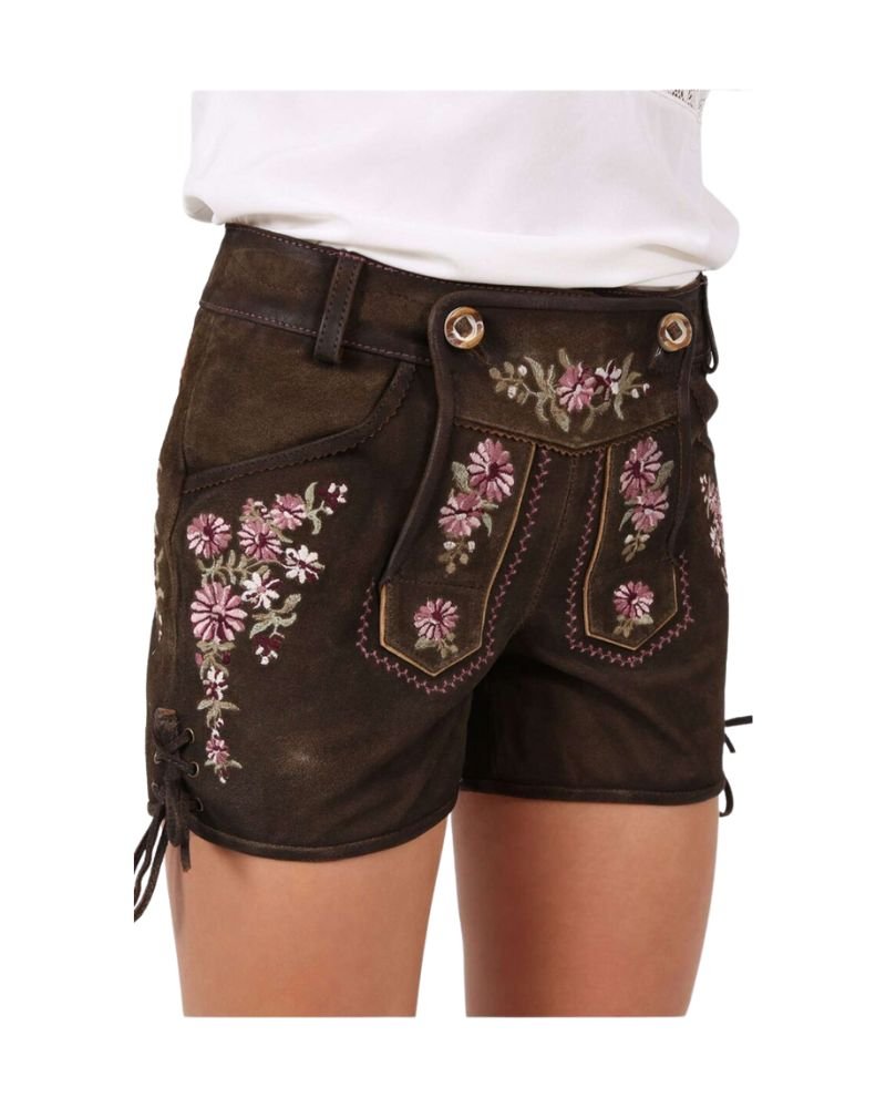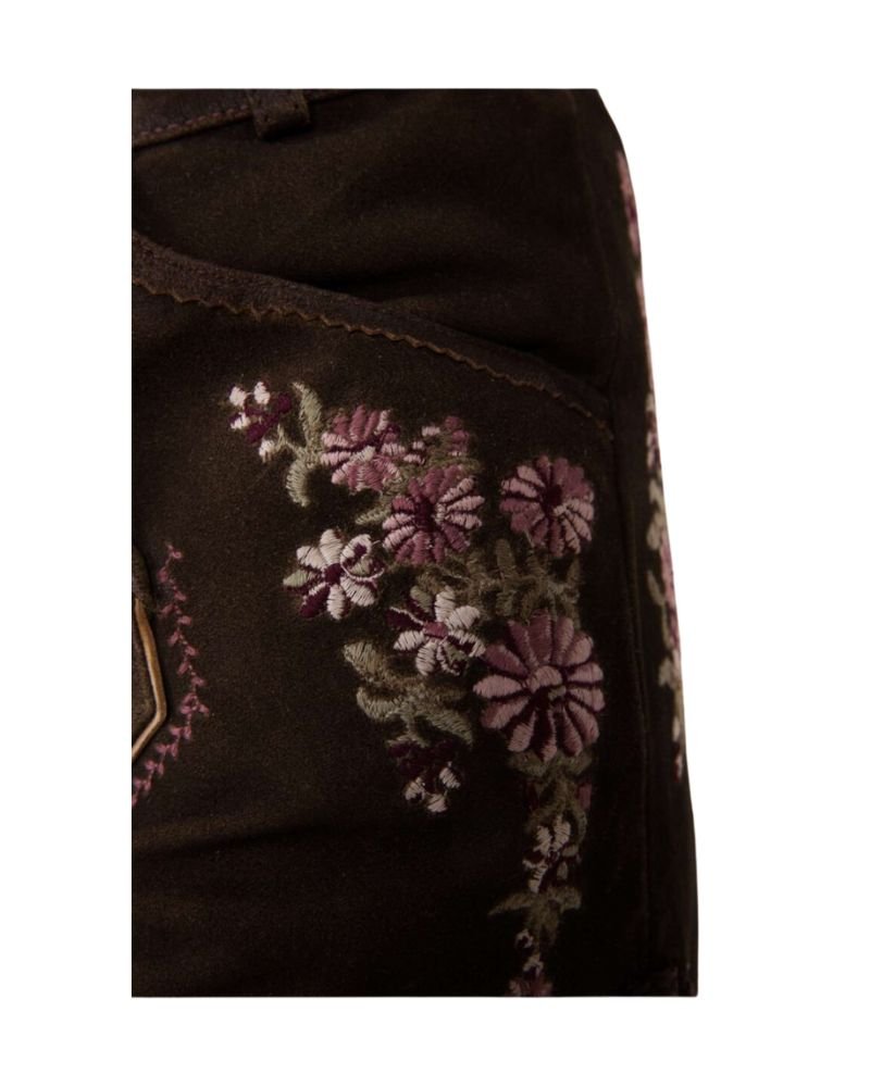 The Tegernsee – Floral Cocoa Women Lederhosen combines old-world charm with contemporary warmth. Made from high-quality leather in a soft cocoa brown hue, this piece is ideal for those seeking elegance in their Oktoberfest outfit. With fine embossed embroidery and authentic details, it celebrates Bavarian tradition while keeping the silhouette flattering and feminine.
