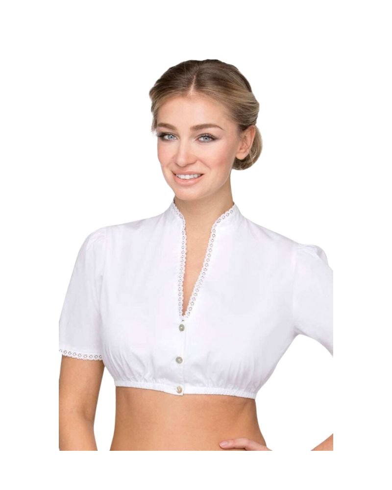 With its stand-up collar and button-front design, Hannelore channels vintage Bavarian styling at its finest. The clean white tone symbolizes tradition and purity, making it versatile enough to pair with dirndls of any color or pattern. It’s a piece that celebrates heritage while fitting seamlessly into contemporary wardrobes.