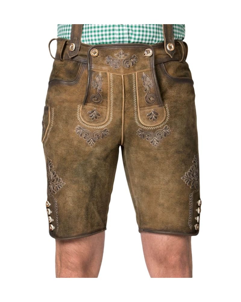 Made from 100% premium quality goat suede leather, these lederhosen are not only stylish but incredibly durable. The high-quality leather naturally molds to your body, providing a personalized fit that enhances comfort with wear. The rustic brown color complements the natural texture of the leather, adding to the authenticity of your look.
