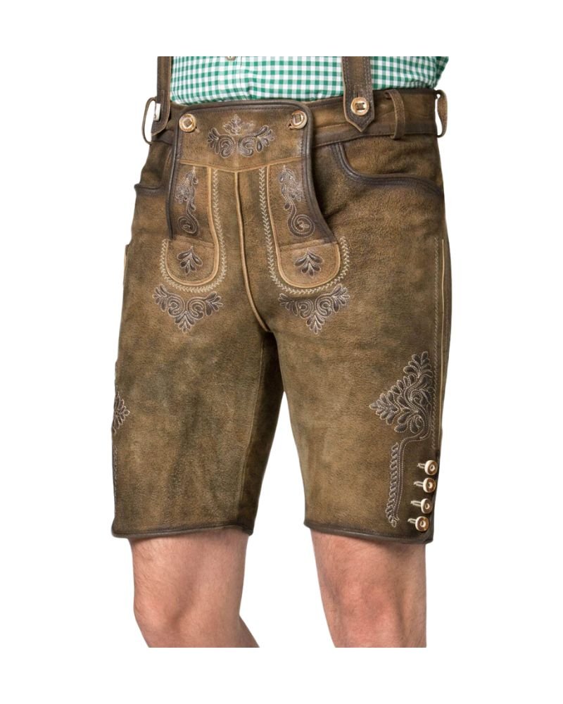 Each pair of lederhosen is handmade, featuring meticulously embossed embroidery with classic Bavarian motif designs. These intricate details capture the spirit of Bavarian heritage, making these lederhosen a perfect choice for Oktoberfest and other festive occasions.