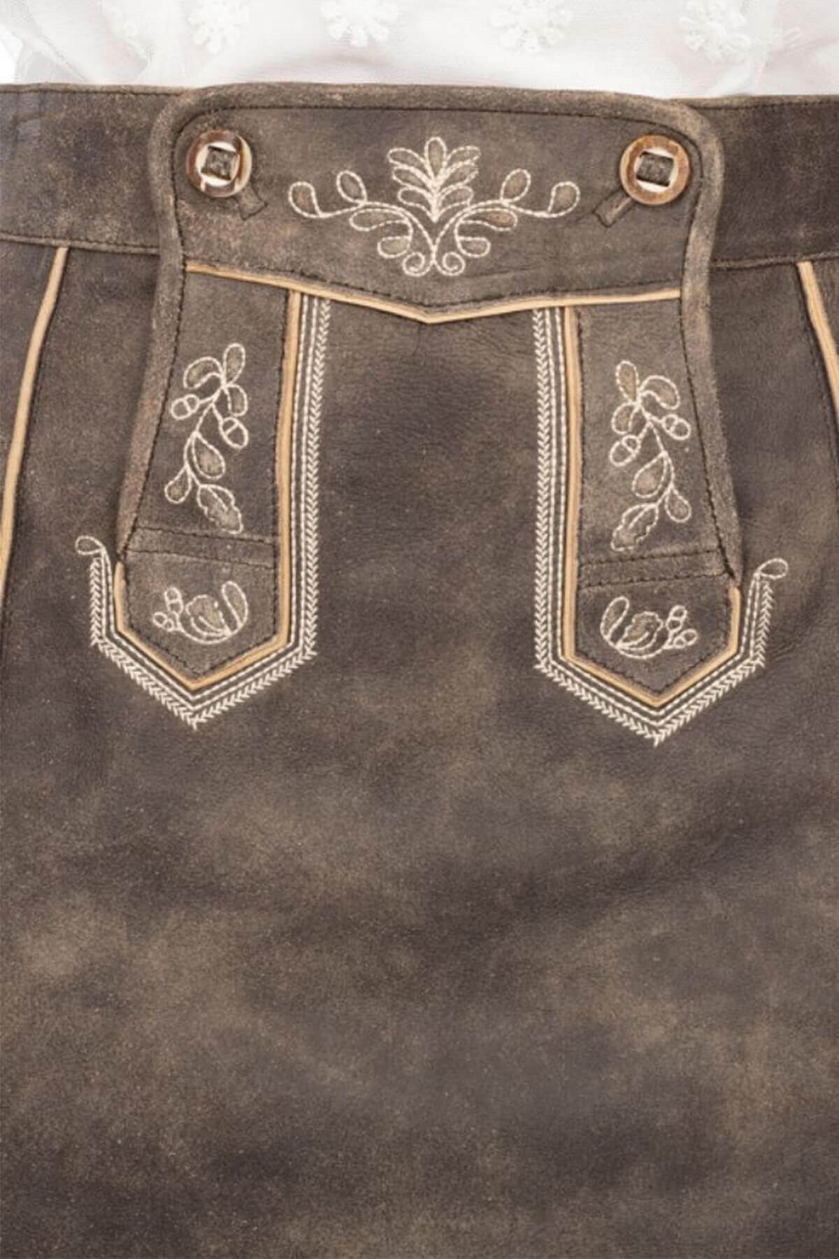 The Marlies – Vintage Chestnut Embroidered Lederhosen Skirt captures the soul of Alpine tradition with its rich goat suede leather and meticulous detailing. Designed for women who value authenticity, it offers a soft yet durable feel that improves with every wear. Whether for Oktoberfest or a traditional gathering, this skirt is a timeless investment in cultural elegance.