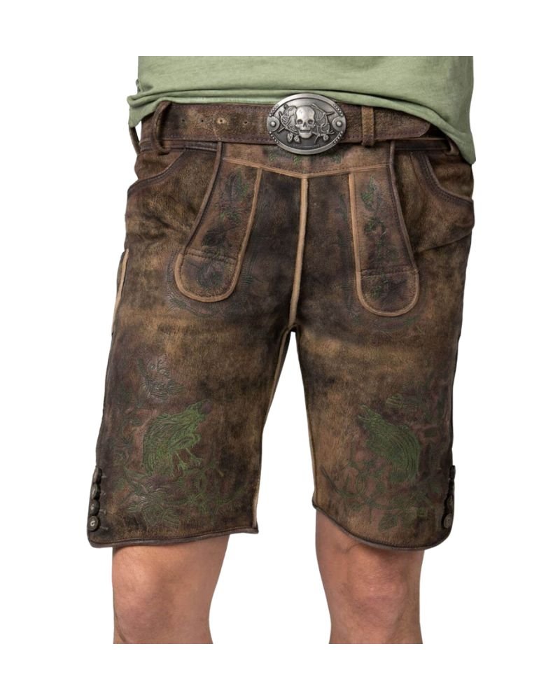 These lederhosen are a beautiful mix of tradition and fine detailing. The forest green embroidery stands out just enough without being over the top. The walnut brown color gives off a natural, earthy vibe. Wore them to Oktoberfest and they were a big hit!